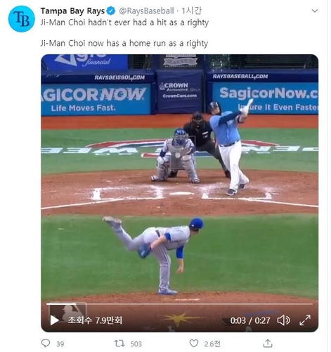 7900 최지만, 오른손 타자로 나와 빅리그 통산 첫 홈런 진기록 야구 2020.07.27 553