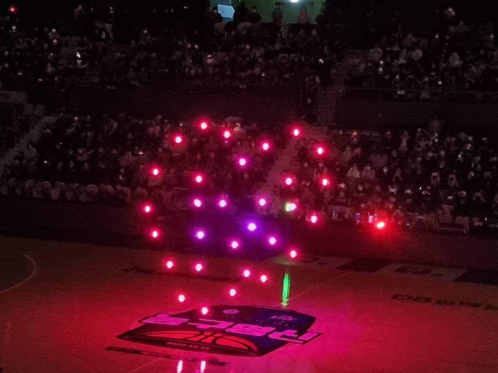 김희옥 KBL 총재와 각 구단 관계자들이 코트에 마련된 종을 세 번 울렸고, 형형색색으로 빛을 내는 드론들이 어두워진 장내를 잔잔히 밝히며 2023년이 왔음을 알렸다.