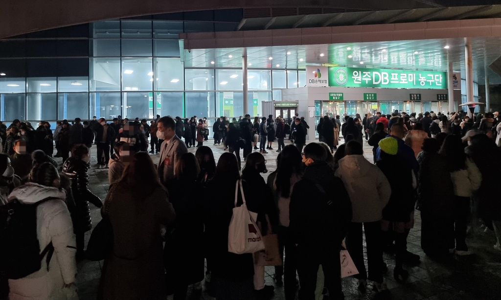31일 오후 10시부터 원주 DB와 전주 KCC 간 2022-2023 SKT 에이닷 프로농구 정규리그 경기가 열린 강원도 원주종합체육관에는 4천100석이 모두 동났다.