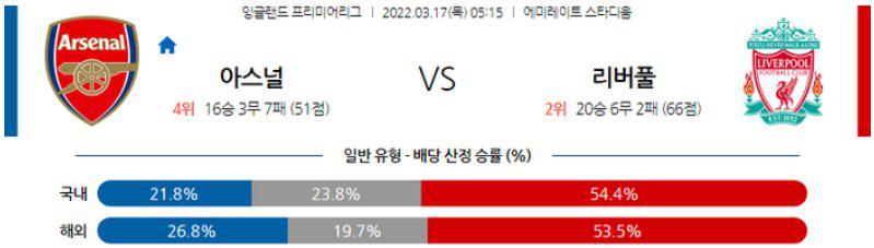 【프리미어리그】 3월 17일 아스날 vs 리버풀