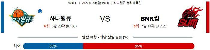 [WKBL] 3월 14일 하나원큐 vs BNK 썸