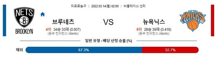 [NBA] 3월 14일 브루클린 vs 뉴욕닉스