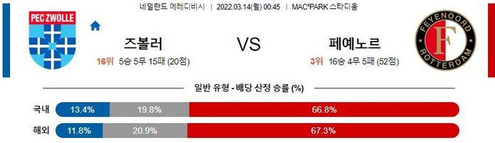 [에레디비시] 3월 14일 즈볼레 vs 페예노르트