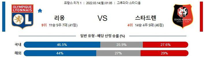 [리그앙] 3월 14일 리옹 vs 스타드렌
