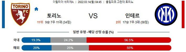 【세리에A】 3월 14일 토리노 vs 인터 밀란
