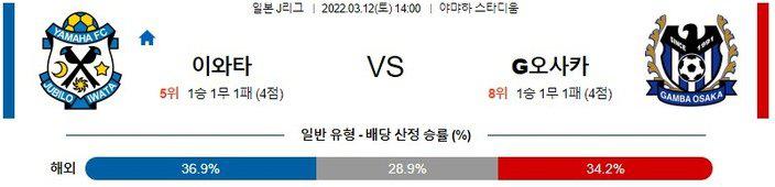【J리그】 3월 12일 주빌로 이와타 vs 감바 오사카
