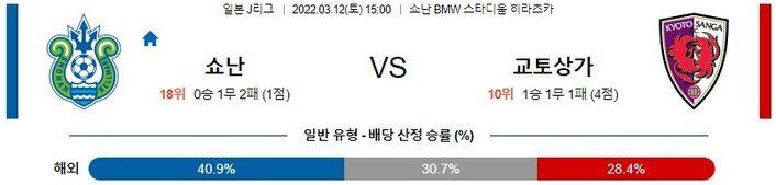 【J리그】 3월 12일 쇼난 벨마레 vs 교토 상가
