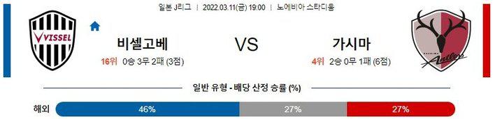 【J리그】 3월 11일 비셀 고베 vs 가시마