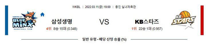 [WKBL] 3월 11일 삼성생명 vs kb스타즈