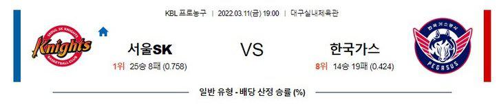 [KBL] 3월 11일 서울sk vs 한국가스공사