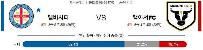 멜버른 시티 승 / 오버(2.5점 기준) 선택지를 고려해야할 경기다. 멜버른 시티는 최근 꾸준하게 공격에서 좋은 모습을 보이고 있다. 공격진의 퀄리티가 높은 만큼 자신들의 강점을 확실하게 활용하고 있다. 최근 수비에서 실점이 잦은 맥아서가 이들의 강점을 제어하지 못할 것이다. 최근 맞대결 전적을 보면 확실히 상성이 좋다. 홈 팀이 무난하게 승리를 따낼 것이다.
