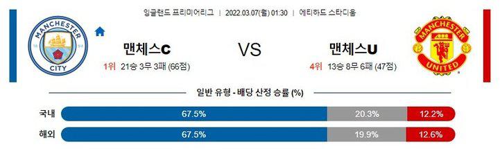 【프리미어리그】 3월 7일 맨체스터시티 vs 맨체스터유나이티드