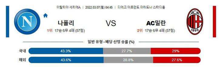 【세리에A】 3월 7일 나폴리 vs AC밀란 칼초