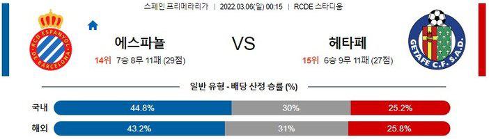 【프리메라리가】 3월 6일 에스파뇰 vs 헤타페