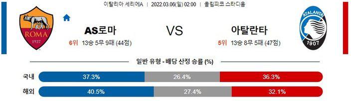 【세리에A】 3월 6일 로마 vs 아탈란타
