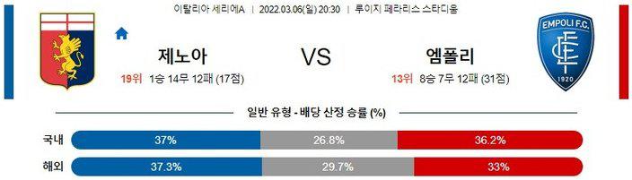 【세리에A】 3월 6일 제노아 vs 엠폴리