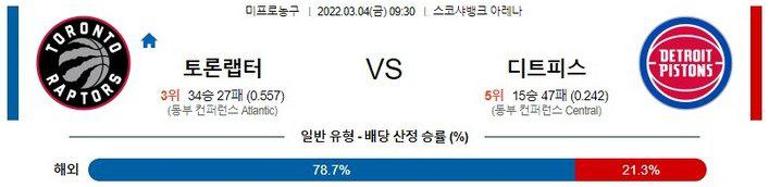 【NBA】 3월 4일 토론토 랩터스 vs 디트로이트 피스톤스