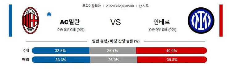 【이탈리아 FA컵】 3월02일 ac밀란 vs 인테르(인터밀란)