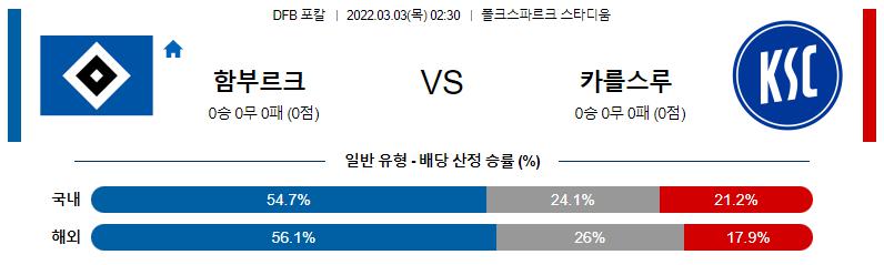 【독일 FA컵】 3월3일 함부르크 SV 카를스루헤(칼스루헤) SC