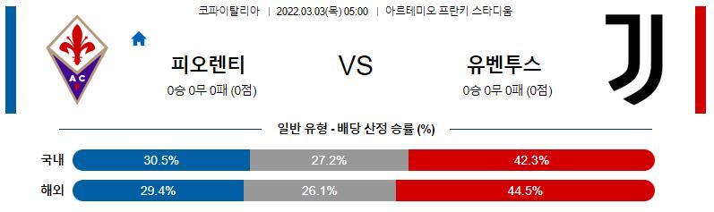 【이탈리아 FA컵】 3월3일 ACF 피오렌티나 vs 유벤투스 FC● 피오렌티나 (리그 8위 / 패승승승패)