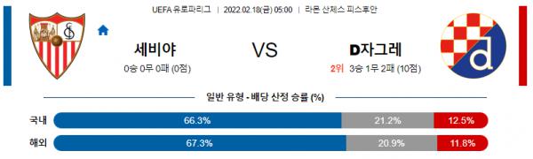 【UEFA유로파】 2월18일 세비야 FC vs 디나모 자그레브