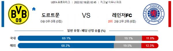 열람중 [UEFA유로파] 2월18일 보루시아 도르트문트 vs 레인저스 FC 메이저 2022.02.17 1862