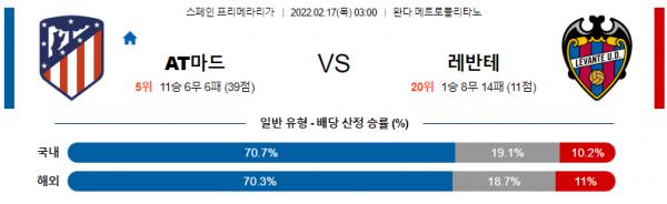 【프리메라리가】 2월17일 아틀레티코 마드리드(AT 마드리드) vs 레반테 UD