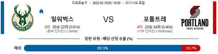【NBA】 2월 15일 밀워키 벅스 vs 포틀랜드 트레일
