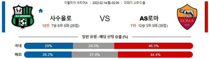 【세리에A】 2월 14일 사수올로 칼초 vs AS 로마