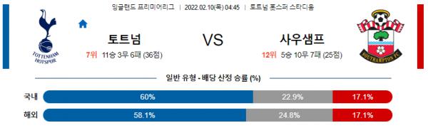 【프리미어리그】 2월 10일 토트넘 홋스퍼 vs 사우샘프턴(사우스햄튼) FC