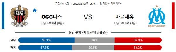 【프랑스 FA컵】 2월10일 OGC 니스 vs 올림피크 마르세유● 니스 (리그 3위 / 승승승승패)