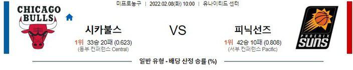 [NBA] 2월 8일 시카고 불스 vs 피닉스 선즈