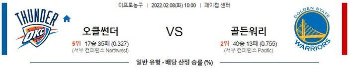 [NBA] 2월 8일 오클라호마시티 썬더 vs 골든스테이트 워리어스