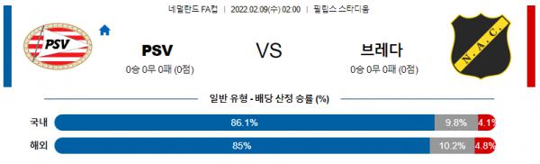 【네델란드 FA컵】 2월9일 PSV 에인트호번(아인트호벤) vs NAC 브레다