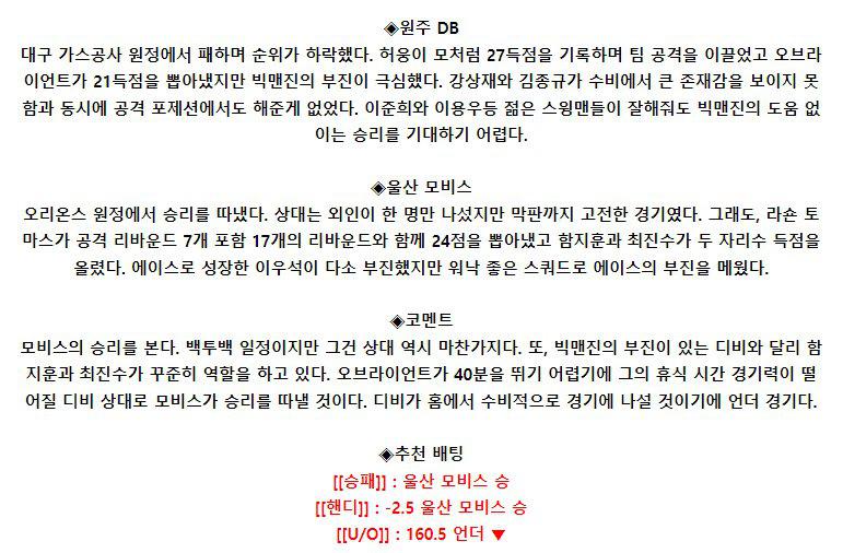[KBL] 2월 6일 동부 DB vs 현대모비스