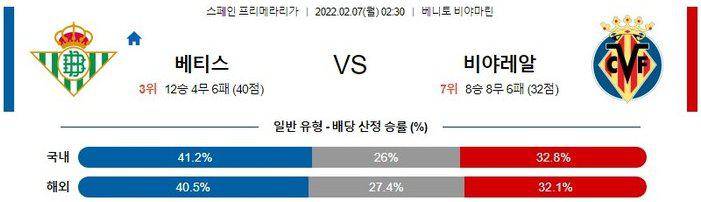 【Laliga】 2월 7일 레알 베티스 vs 비야레알 CF
