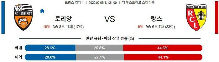 랑스가 승리할 가능성이 높다. 하지만 무실점 승리 까지는 거두지 못할 가능성이 크다. 최근 맞대결 세 경기에서 모두 오버(2.5)를 충족하는 결과가 나왔다. 이번에도 똑같은 패턴을 반복할 가능성이 높다. 오버(2.5) 가능성은 높다. 로리앙의 득점력이 나쁘지만 랑스의 실점기록을 보면 랑스의 핸디(+1.0) 승은 추천하고 싶지 않다. 랑스 승 / 오버를 주력으로 삼는 것이 좋다.
