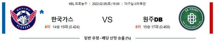 [KBL] 2월 5일 한국가스공사 vs 원주 DB