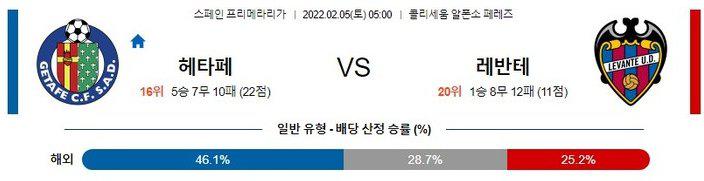 【Laliga】 2월 5일 헤타페 CF vs 레반테