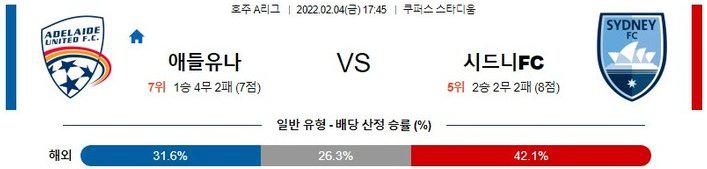【호주A리그】 2월 4일 애들레이드 유나이티드 FC vs 시드니 FC