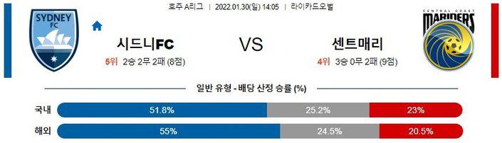 【호주A리그】 1월 30일 시드니 FC vs 센트럴 코스트 마리너스 FC
