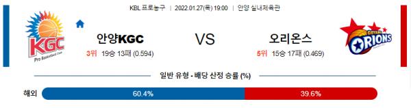 [KBL] 1월 27일 안양 KGC인삼공사 vs 고양 오리온스