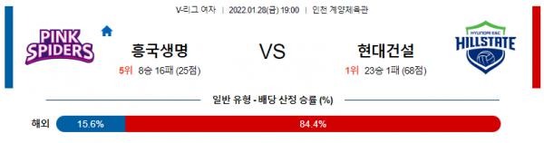 4라운드 마지막 대결을 펼쳤던 두팀이 올스타전 휴식기 이후 홈과 원정을 바꿔서 5라운드 첫 경기 일정에서 재격돌 한다. 현대건설의 블로킹에 흥국생명이 고전할 것으로 예상되는 경기다. 현대건설 승리 가능성을 추천 한다.