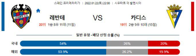 【Laliga】 1월 22일 레반테 UD vs 카디스 CF