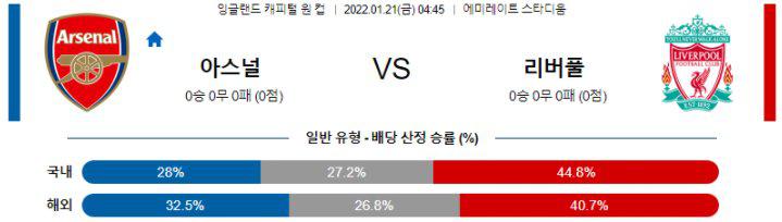 [잉글랜드 캐피탈 원 컵] 1월 21일 아스날 vs 리버풀