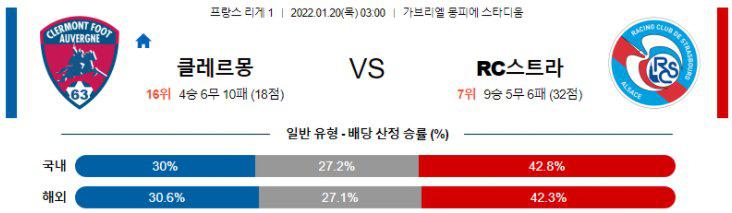 [리그앙] 1월 20일 클레르몽 푸트 vs 스트라스부르