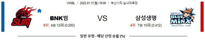 【WKBL】 1월 17일 BNK 썸 vs 삼성생명