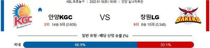 창원 LG가 오세근을 제어하는데 실패할 것으로 예상되는 경기. 또한, 휴식기 이후 실전 경기감각이 경기 초반 떨어질 가능성이 높은데 홈경기 일정에 있다는 것이 KGC인삼공사 선수들이 영점을 먼저 잡는데 도움이 될것이다. KGC인삼공사 승리 가능성을 추천 한다.