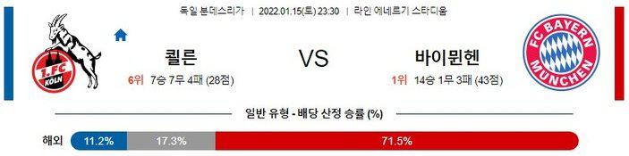 [분데스리가] 1월 15일 쾰른 vs 바이에른 뮌헨