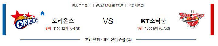 【KBL】 1월10일 고양오리온 vs 수원KT